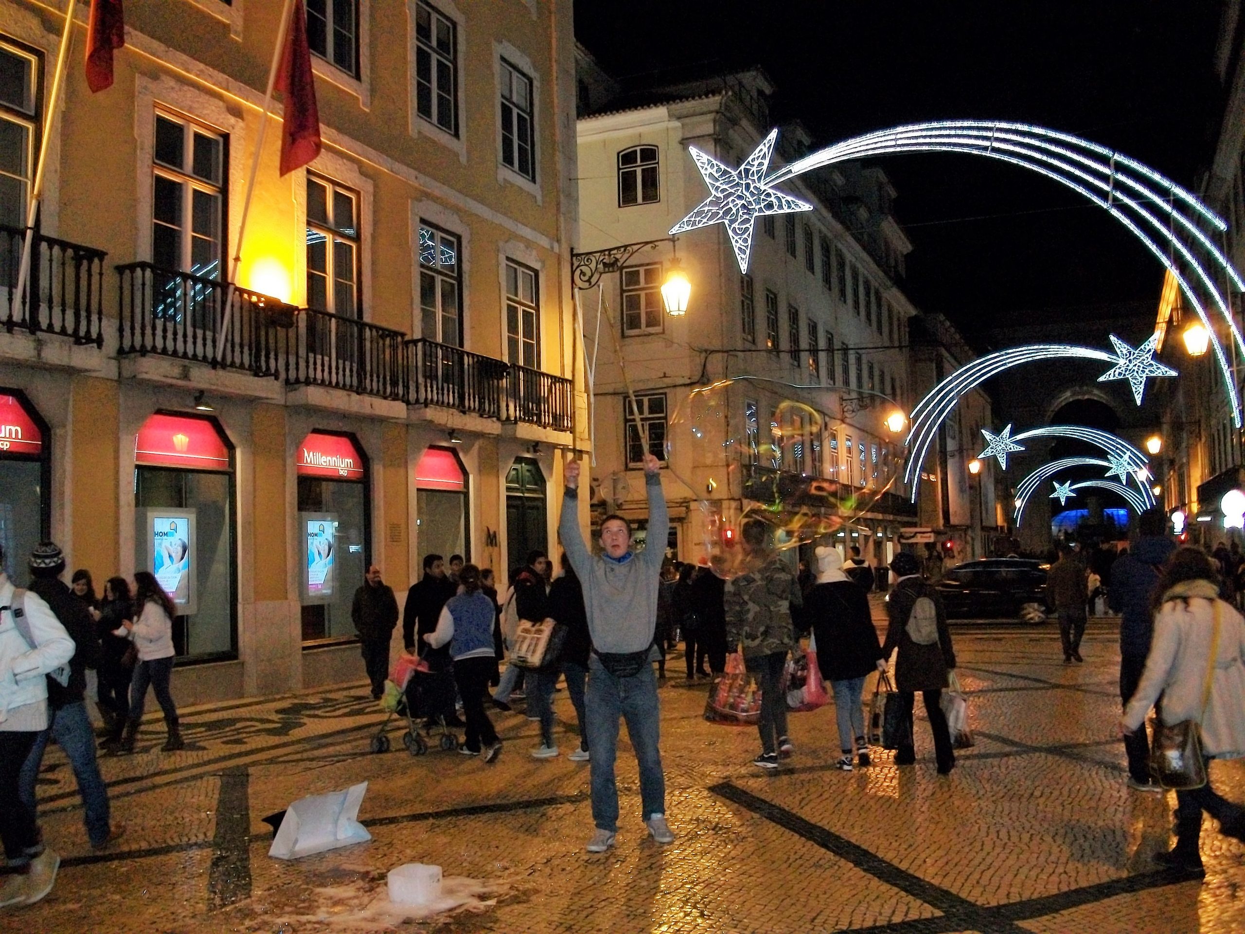 L’atmosfera del Natale, è suggestiva praticamente ovunque ed a Lisbona, è resa ancora più particolare dalla musica dei canti natalizi che si confondono con le struggenti melodie del fado e dalle luci che si riflettono sui mosaici che lastricano le strade del quartiere di Chiado, creando suggestioni che difficilmente si trovano in altre parti del mondo.